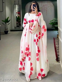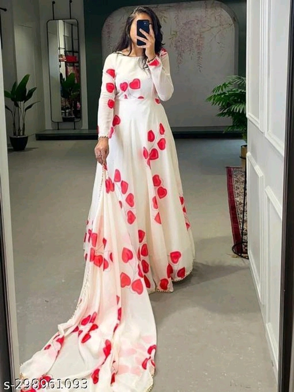 Name: Exclusive white faux georgette printed designer partywear dress with dupatta
