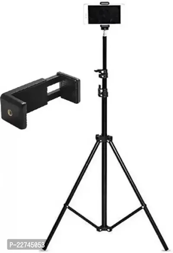 Lightweight And Portable 7 Feet Long Tripod Stand With Mobile Clip Holder Tripod -Black, Supports Up To 2000 G